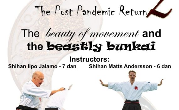 Turussa 5. maaliskuuta 2023 PAIKKA: Shaolin-dojo, Linnankatu 61 VALMENTAJA: Ilpo Jalamo 7. dan LEIRIAJAT: 12.00-14.00, 14.30-16.30 LEIRIOHJELMA: ”Ymmärrä kata-harjoitusten liikkeet”. Leirillä käsitellään eri kobujutsun asekatoihin sisältyviä tekniikoita ja niiden sovelluksia. Leiri auttaa ymmärtämään katan monipuolisia suorituksia, joita ei yleensä käsitellä perusharjoittelun yhteydessä. Leirille voivat osallistua kaikki vähintään keltaisen vyön suorittaneet […]