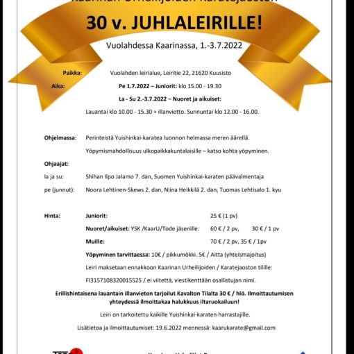 Leirimaksun voi maksaa ennakkoon Espoon Yuishinkai ry:n tilille.